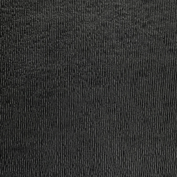 Precyzyjna tekstura pionowych, drobnych żłobień · Regularna, liniowa struktura na całej powierzchni · Efekt szczotkowanego kamienia lub ryflowanego betonu · Minimalistyczny, uporządkowany wzór o subtelnej trójwymiarowości · Kolor głęboki czarny z subtelnymi cieniami ujawnianymi przez światło dzienne · Matowe wykończenie odporne na blaknięcie