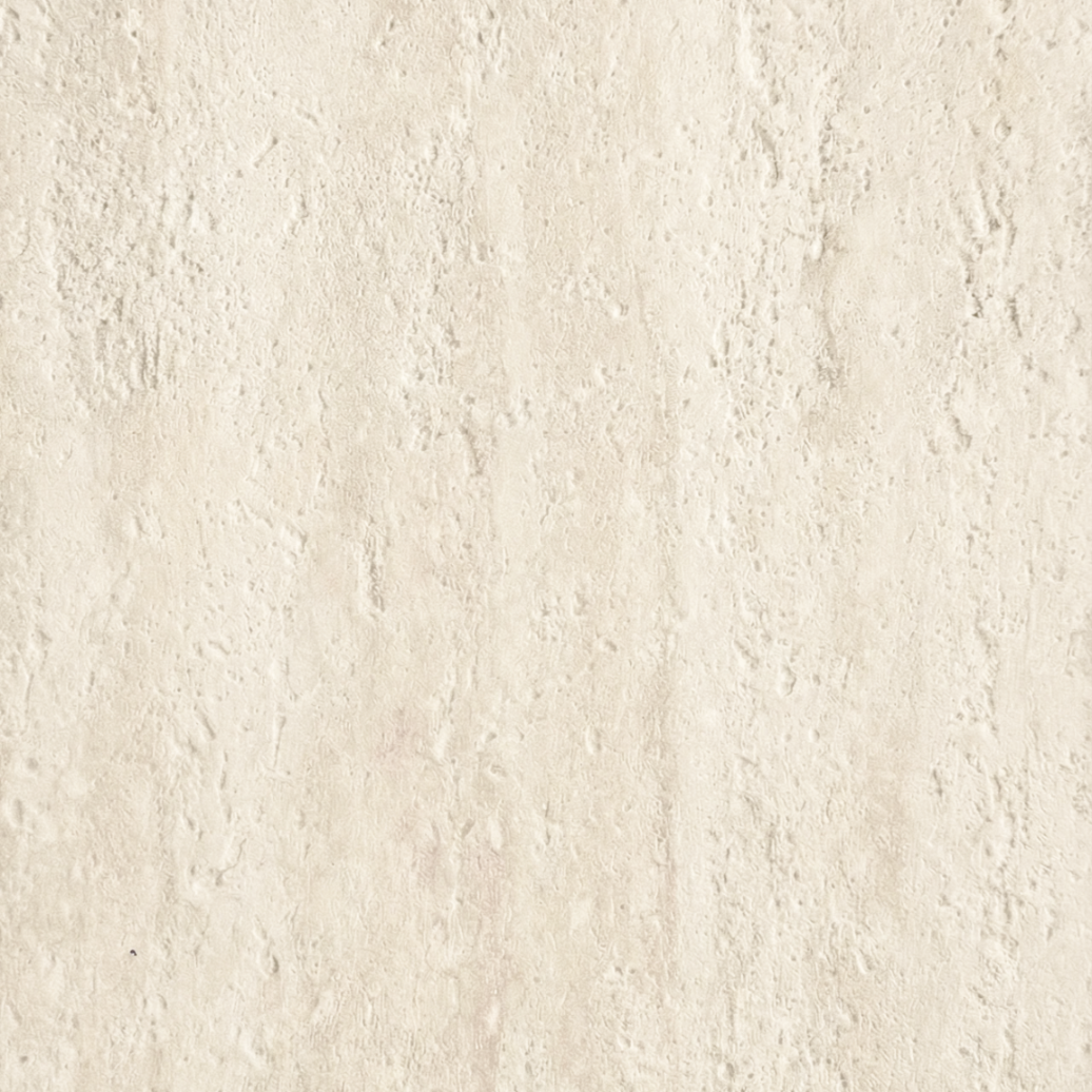 Wierna reprodukcja tekstury naturalnego trawertynu · Charakterystyczne pory i kawerny rozmieszczone nieregularnie · Subtelne pionowe żyłkowanie w stylu vein-cut · Organiczna wariacja rysunku · Matowe wykończenie odporne na blaknięcie