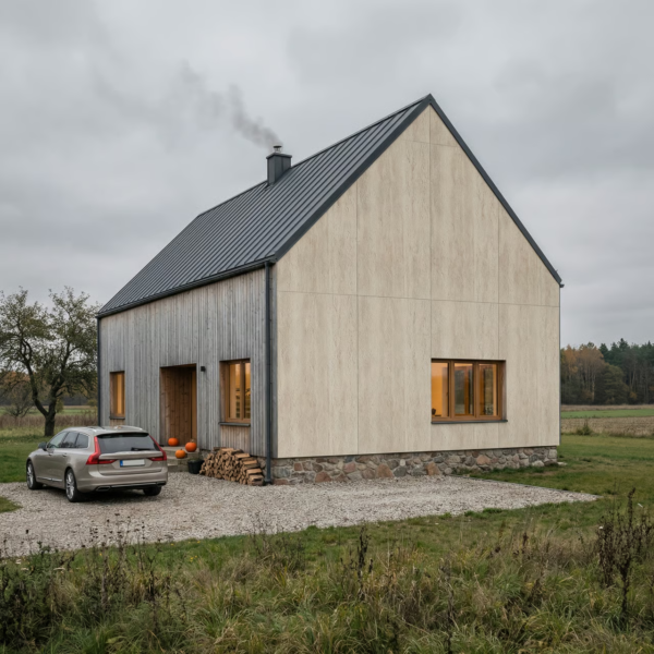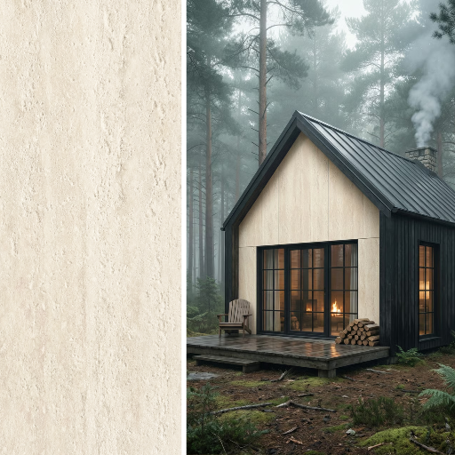 Płyta elewacyjna Pietra Mineral Crema o wymiarach 2400×1200 mm to kompozyt kwarcowo-polimerowy o teksturze naturalnego trawertynu. Wykonana poprzez wytłaczanie zmielonego kwarcu i polimeru pod wysokim ciśnieniem. Charakterystyczne pory, kawerny i pionowe żyłkowanie tworzą organiczny rysunek w ciepłym kremowym beżu. Grubość 4 mm pozwala na montaż bez znaczącego obciążenia konstrukcji. Dedykowana do wykończeń elewacji budynków mieszkalnych i komercyjnych.